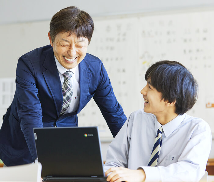 “これからの社会”に求められるのは、世界中の仲間と協働し、地球規模の共通課題に積極的に取り組んでいく姿勢。そんな未来を見据えて、私たちが実践するのは「高度なコミュニケーション力を持って、主体的に学び、行動できる生徒」の育成です。他者を巻き込み、大きな目標へと挑戦する生徒たちを応援します。
