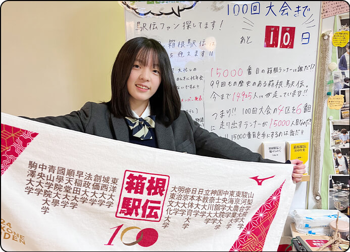 展示をきっかけに、教科や学年の担当以外の先生からも応援していただけたり、箱根駅伝部に所属していた経験がある先生がいることを発見したり、意外と陸上部でも箱根駅伝についてあまり知らない生徒が多かったりと、楽しい気づきを体験できました。
