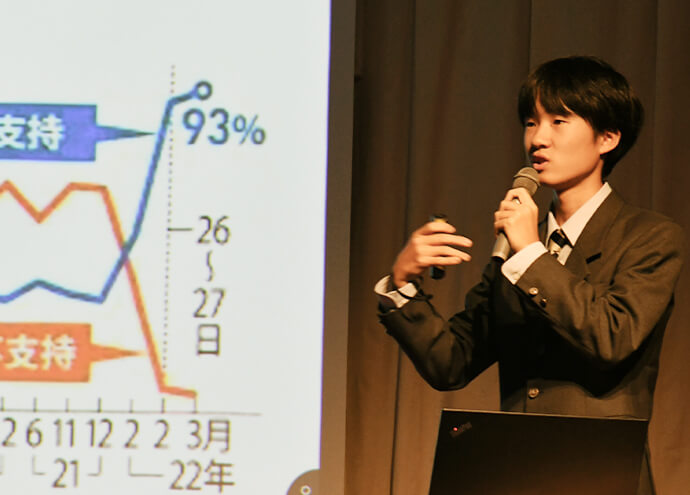 他者にも伝えていきたい身の回りのことにあまり興味のなかった私が、探究を通して日常のニュースや出来事に興味を持ち調べるようになれたのが大きな成長だと感じます。これからは自分の興味関心が相手の興味関心につながるよう、上手く伝えられる人になりたいです。