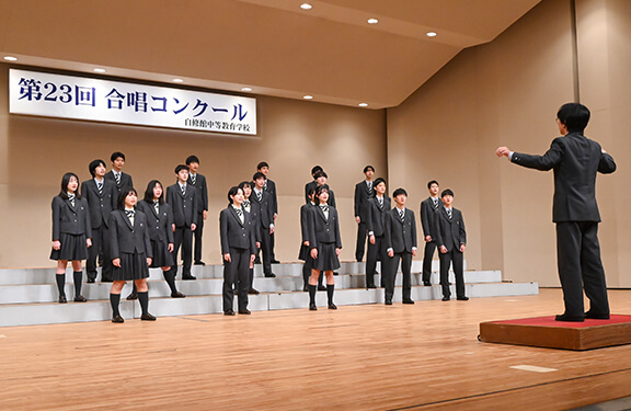 小学生のころから合唱が好きで、実行委員を経て今年は委員長に立候補しました。“一人ひとりの想いが重なって奏でられる素敵なハーモニー”を多くの人に楽しんでもらうことを目標に各学年の実行委員と協力しながら企画・運営に努め、自分自身も合唱の楽しさや面白さをあらためて実感することができました。