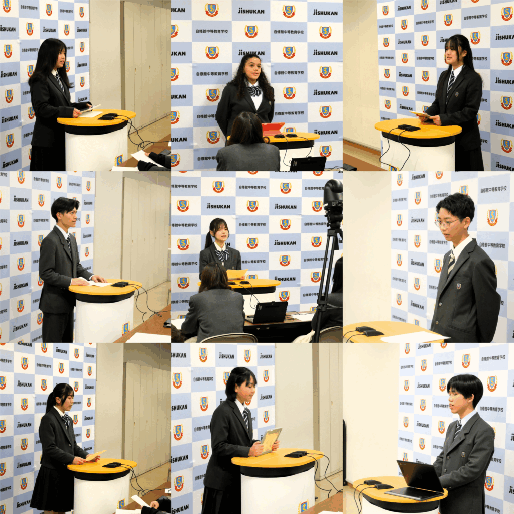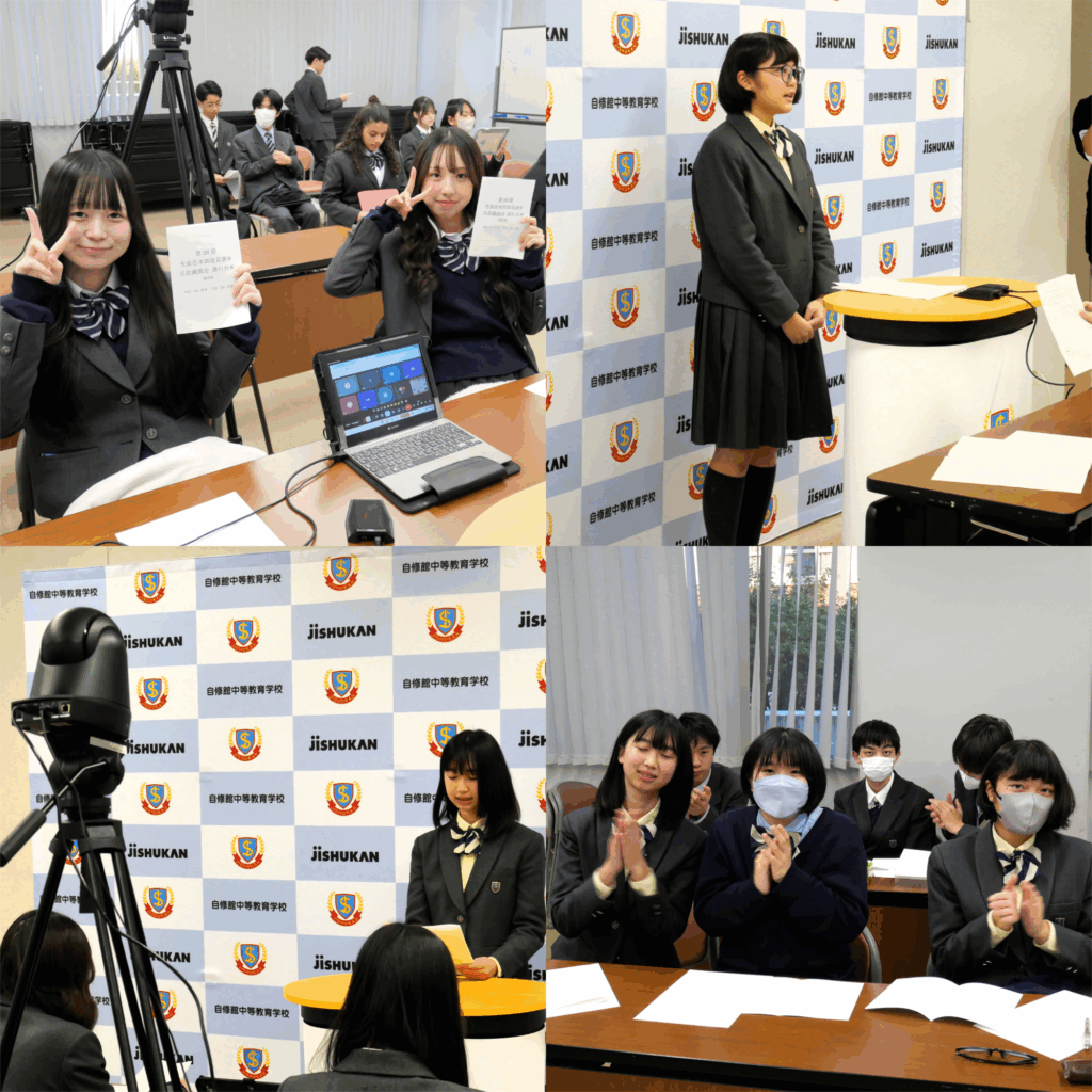 生徒会選挙の立会演説会を実施しました。会長候補、後期課程生の本部役員候補はいずれも定数を超える立候補となり、今年は信任投票ではない、文字どおりの「選ぶ」選挙です。一部の候補者はインフルエンザ罹患のため後日演説を行うことになりましたが、形式をオンラインに切り替えての開催とし、第一会議室を会場に候補者が入れ替わり登壇しました。画面越しではあっても、会場には適度な緊張感が漂い、ひとり一人が真剣な眼差しで自らの言葉を紡いでいたのが印象的でした。