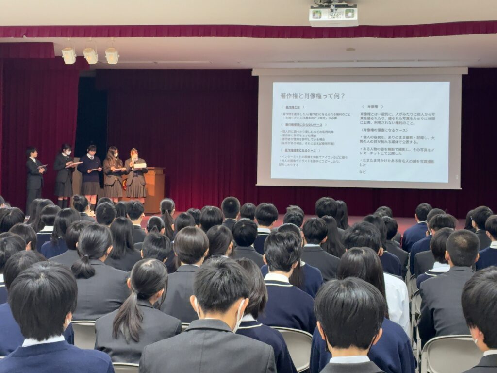 当日は、各クラスがSNSの利用マナーや情報発信の注意点、ネット上の危険から身を守る方法などを発表しました。